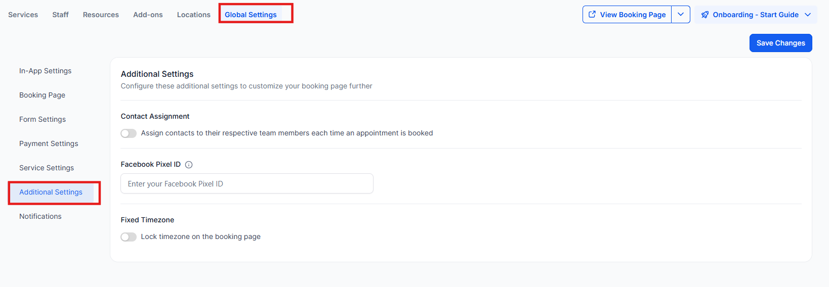 - Track Booking Activities: Add your Facebook Pixel ID in this section to monitor events triggered during the booking process, allowing you to track and analyze user behavior related to your services.