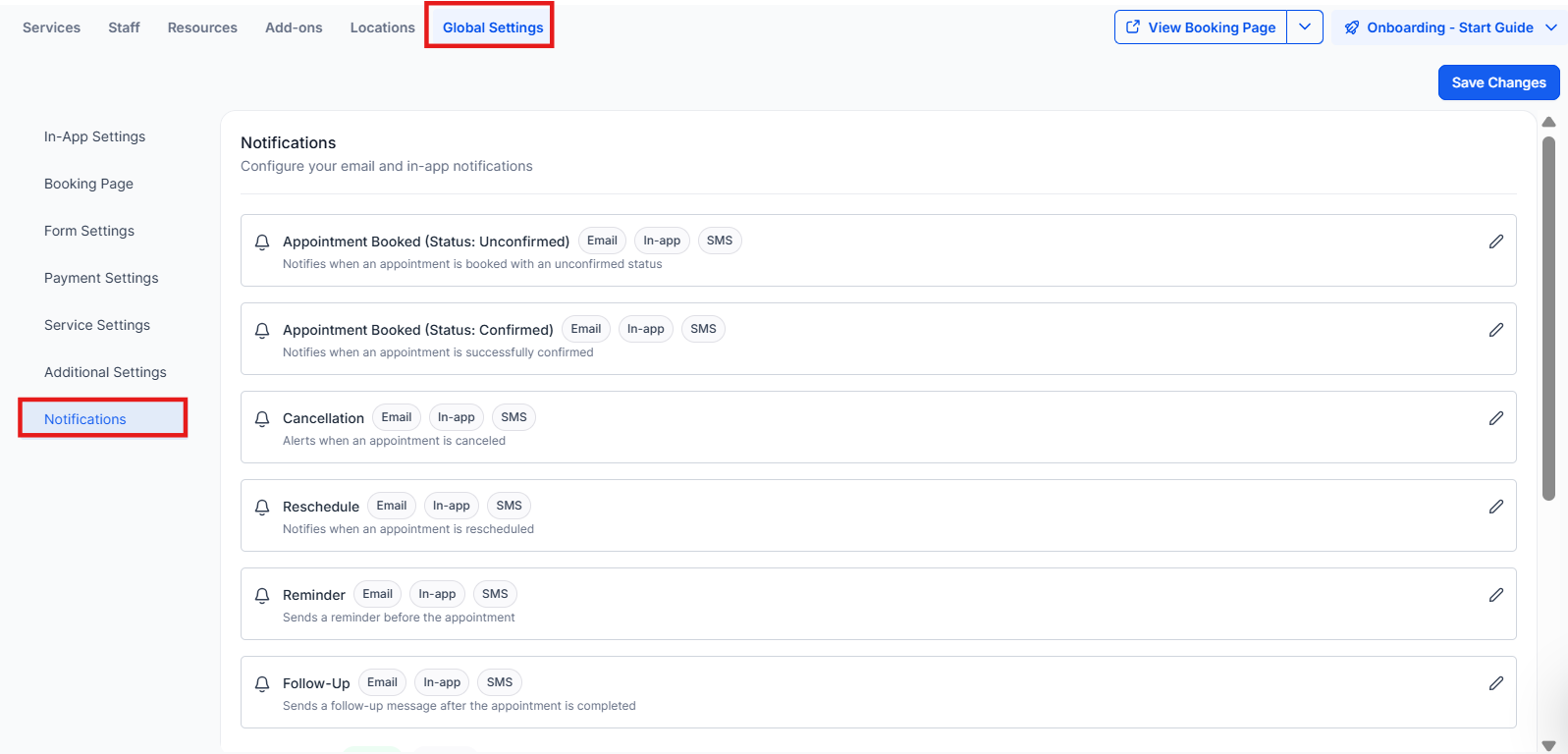 The Global Settings feature centralizes and streamlines your service configuration process, offering a simple yet powerful way to manage various aspects of your business. Whether you’re handling scheduling, payments, notifications, or third-party calendar integrations, Global Settings helps you save time by applying consistent rules across all services. This article will guide you through the key features and benefits, how to use them effectively, and answer common questions.