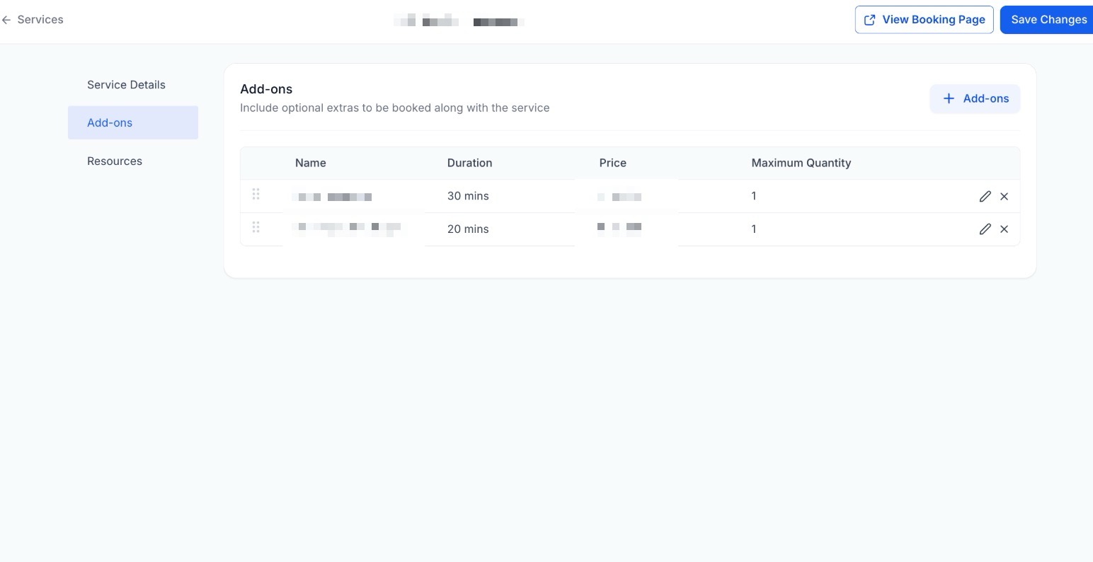 These are optional extras that customers can select alongside a main service. They are ideal for personalizing appointments or upselling additional features. Add ons can be made visible to customers on the booking page or kept for internal use only by staff members.