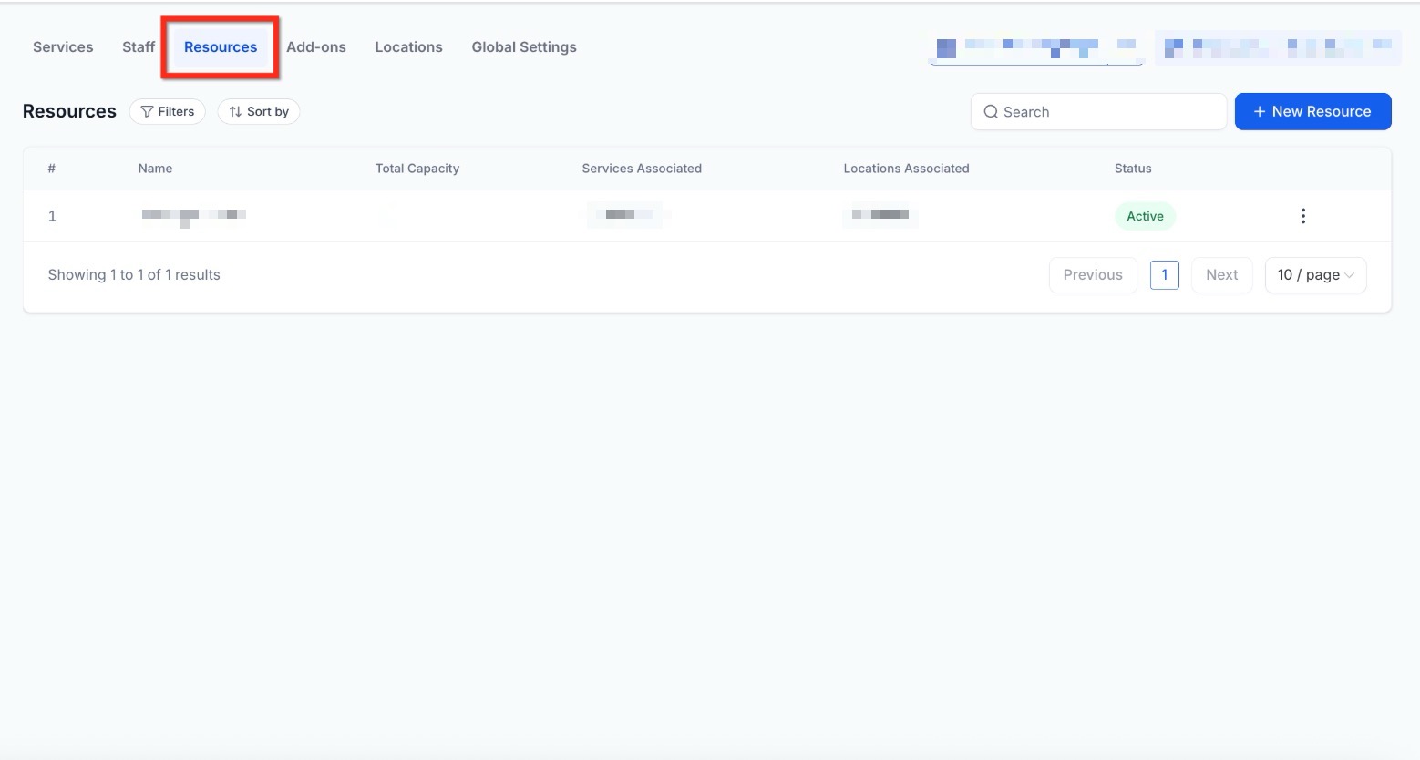 Section titled “Resources”Resources are assets required for a service to occur, such as a specific treatment room or a piece of technology. By assigning resources and setting their capacity, the system ensures that you never book more clients than your physical space or equipment can handle.