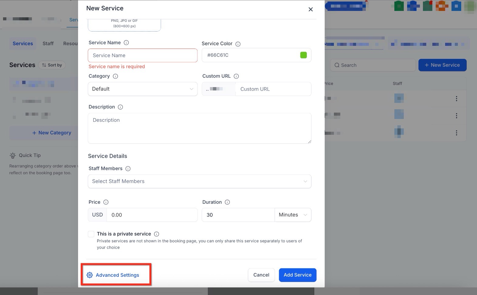 Section titled “Step-by-Step Guide to Creating a New Service”Follow these steps to ensure your service is fully configured and ready for public booking.