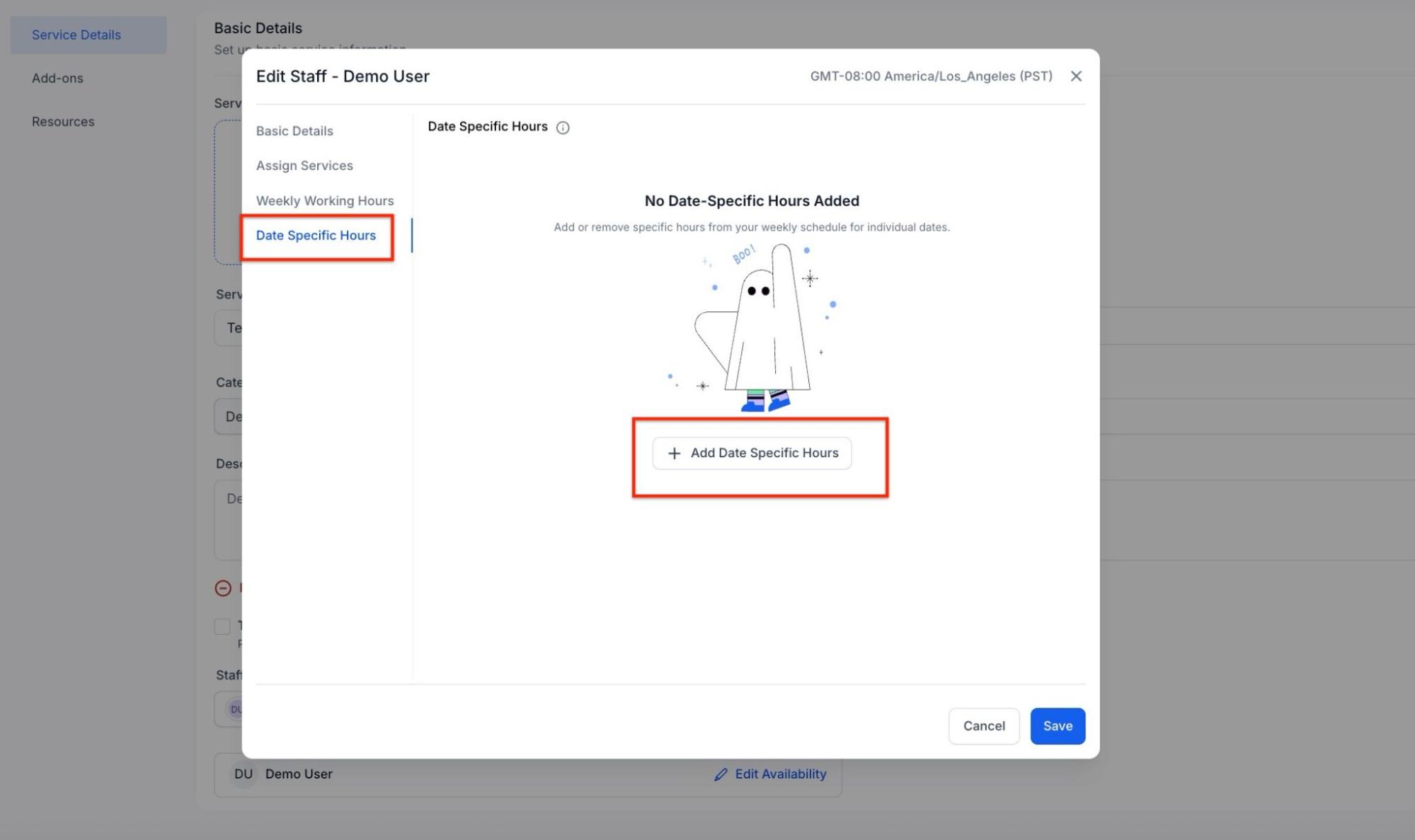 - Date Specific Hours: You can add date-specific hours according to your availability.