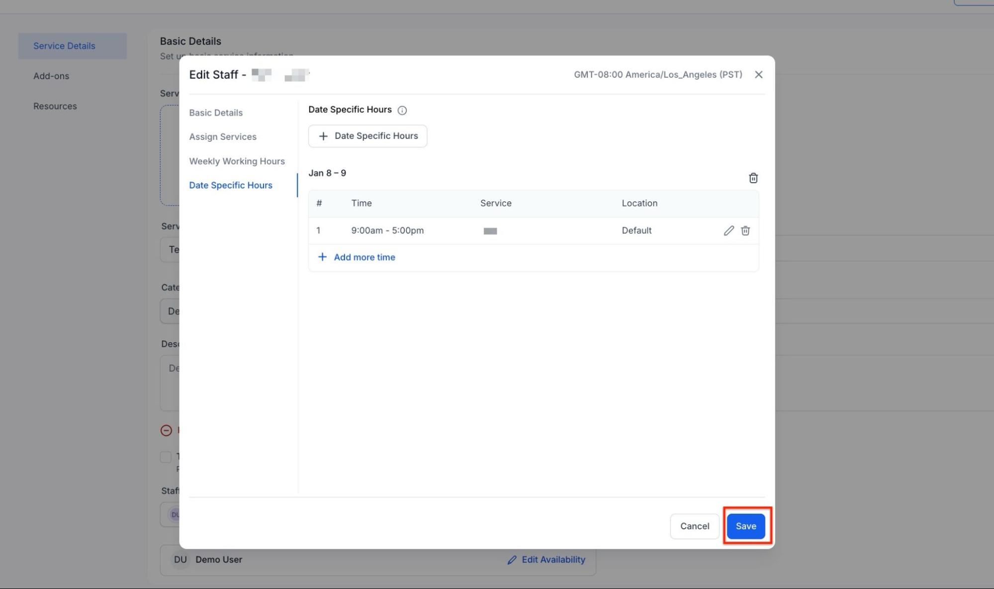 - Save: Once you have added Date-Specific hours, you can save the changes