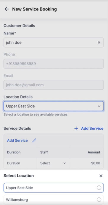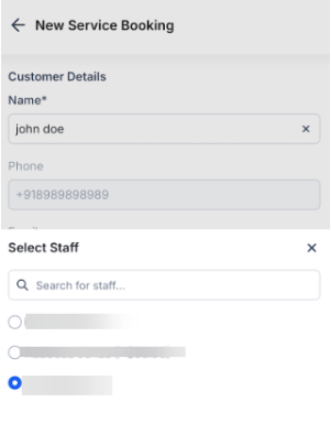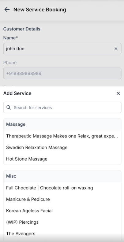 Section titled “How to Book a Service on Mobile”Follow these steps to create a new service-based appointment using the mobile application: