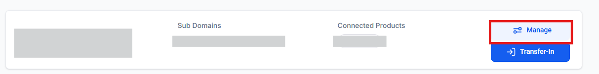 - Click on Manage to open up the options for a specific domain.