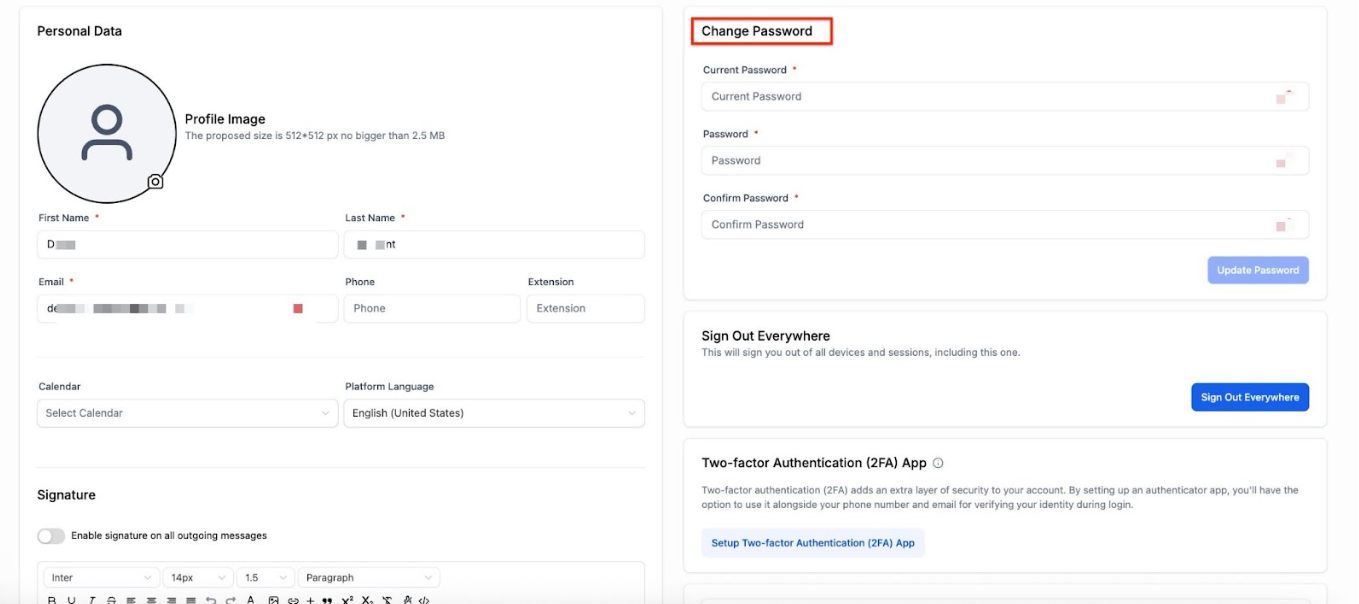 Section titled “Option 1 - Settings > My Profile ”If you don’t see the “My Staff” tab in your account settings, use the My Profile section to reset your password.