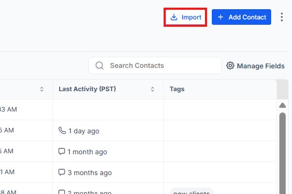 - Import Contacts and Companies: To import contacts and companies, go to Contacts > Import Contacts in . Upload the CSV files exported from HubSpot and map the fields correctly (e.g., first name, last name, email).
