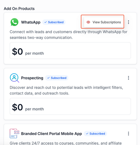 **Step 3:**Click the three-dot menu next to the subscription and select View Subscription.