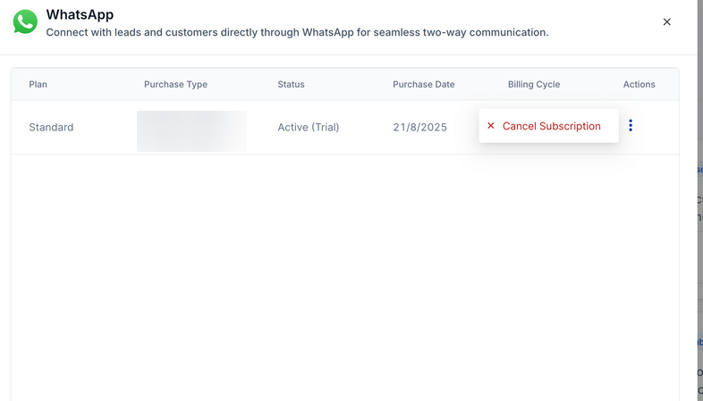 - Detailed Subscription OverviewUsers can view plan type, billing cycle, status, and purchase type in one place for better clarity.
