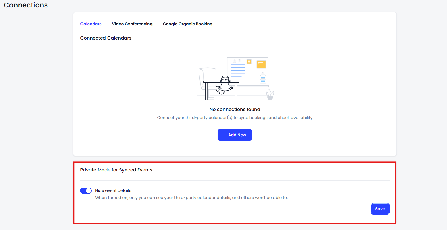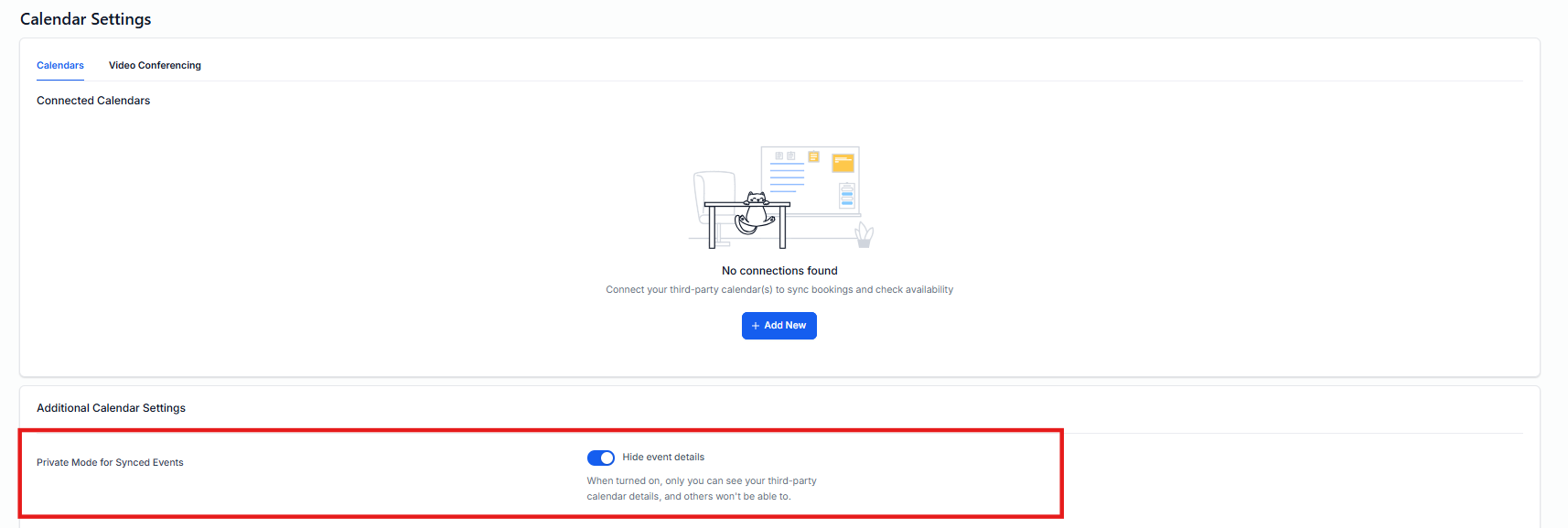 - Private Mode for synced events helps maintain your privacy. When enabled, this setting ensures that only you can view the details of events from your third-party calendars. This prevents others from accessing these details on the platform, thus enhancing the confidentiality of your calendar information.