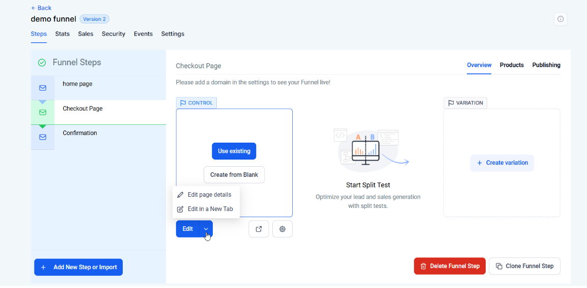 - Open the Funnel Step where you have your checkout (One-Step or Two-Step)