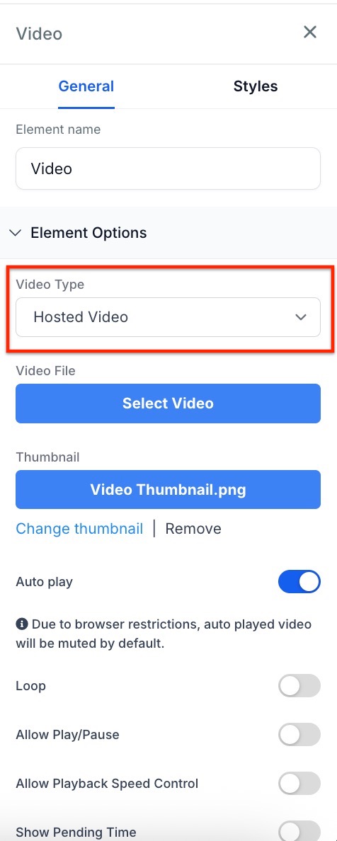 Hosted Video Element