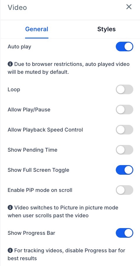 Section titled “Why do my videos start on mute?”This is due to the regulations that auto-playing videos on iOS, Safari, Chrome, Android, Firefox, and Edge must start muted. The browser manufacturers control this policy, which cannot be overruled.