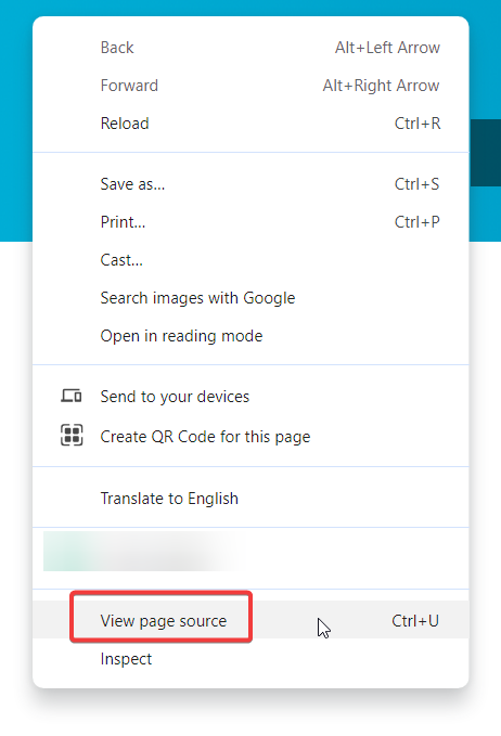 - From the context menu that appears, choose the option to “View Page Source”. This opens up the HTML source code of your page.