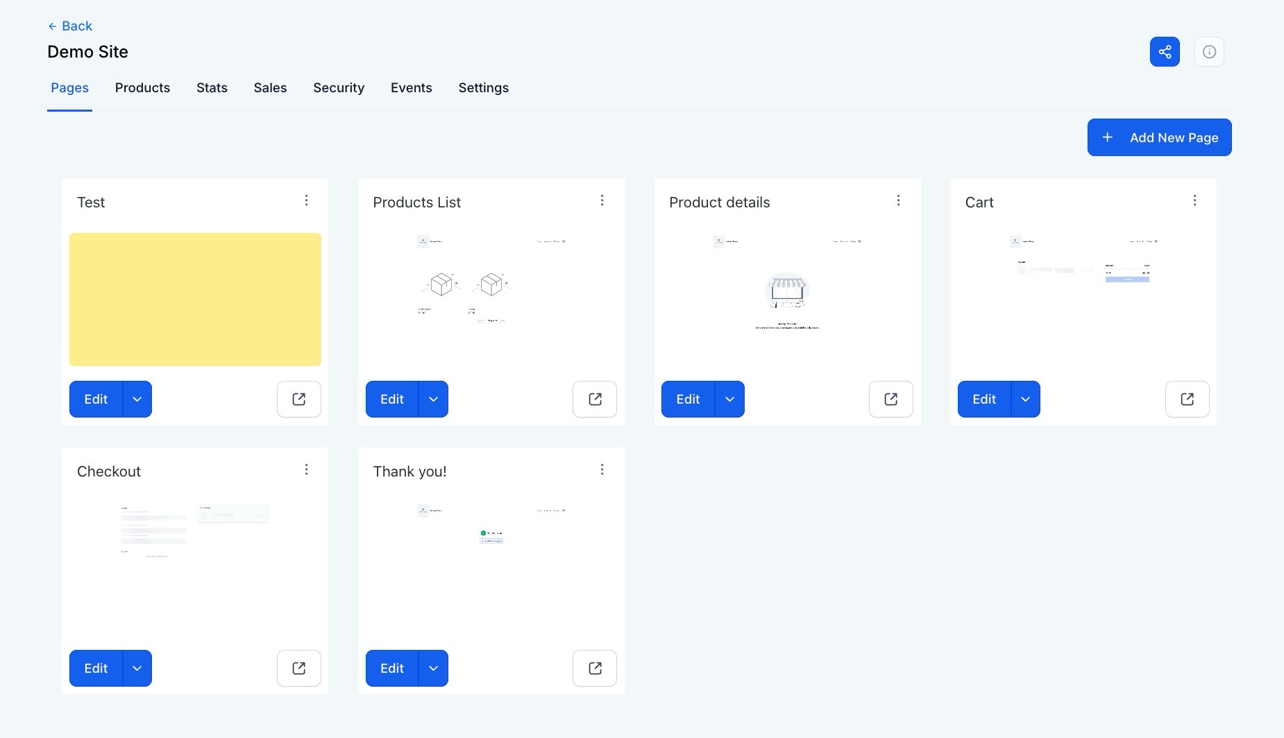 Step 2: Click the edit icon for the page you wish to edit.