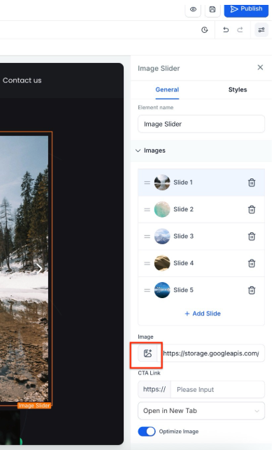 Section titled “Question: Can I add the button in the image slider?”Answer: The Image Slider element is exclusively available in the new builder.