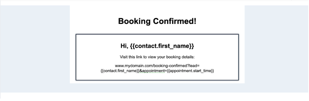 Section titled “Step 5 (Option 1): Set up your email with the URL”- Send this email to the lead so that it opens their name, you will use the value “contact.name” instead of ‘John’ so that it displays their name. In our example, the URL would look like this: https://test2.excaaa.com/ubsub-test?lead={{contact.name}}