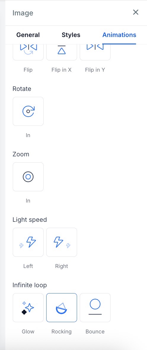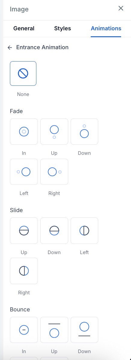 - Pick from various entrance, hover, and loop animations such as fade, slide, bounce, rotate, and zoom.