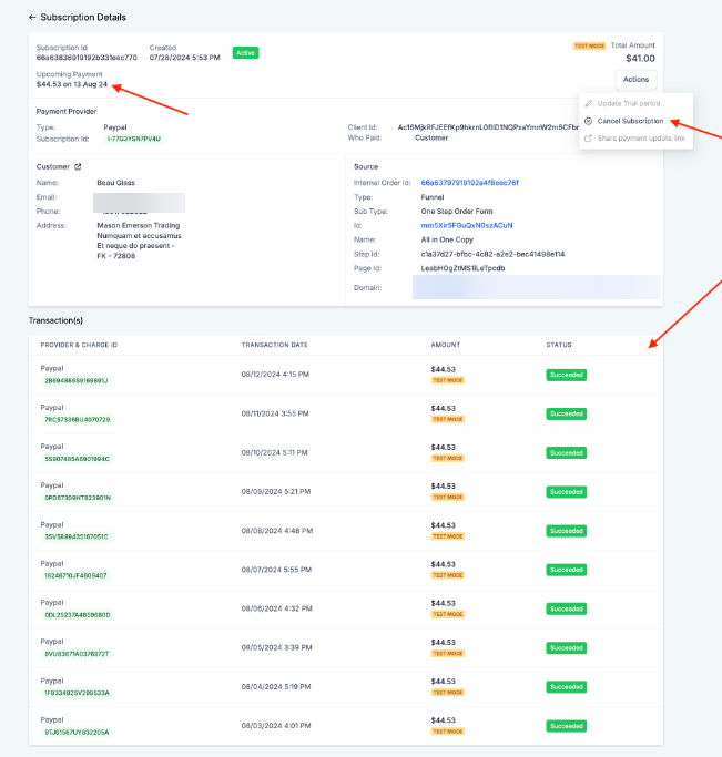- Tracking: Subscription status updates made within PayPal will be reflected in real-time inside