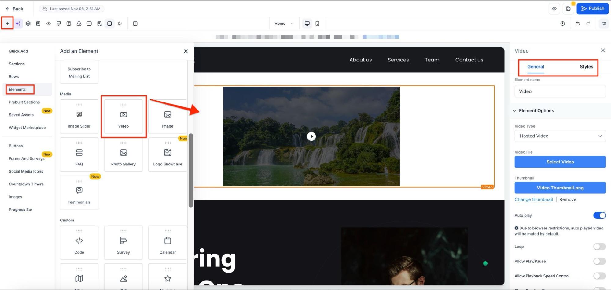How to Use: Add a video element to your page, then customize settings such as loop, mute, playback speed