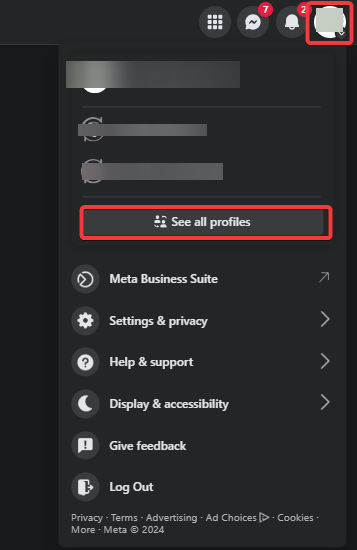 1. Log in to Facebook and click on your profile photo in the top right corner.