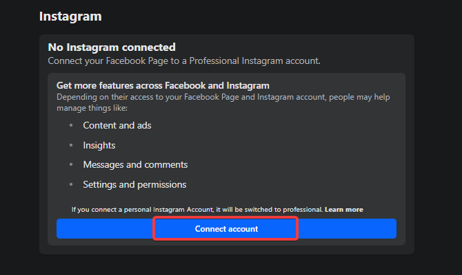 - The next step will allow you to connect your Instagram business profile to a Facebook page associated with your business. This is an optional step that can make it easier to use all of the available features across the Meta family of apps.