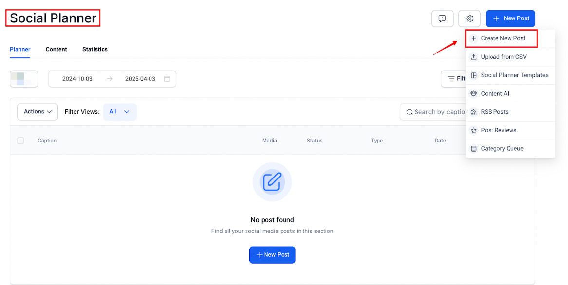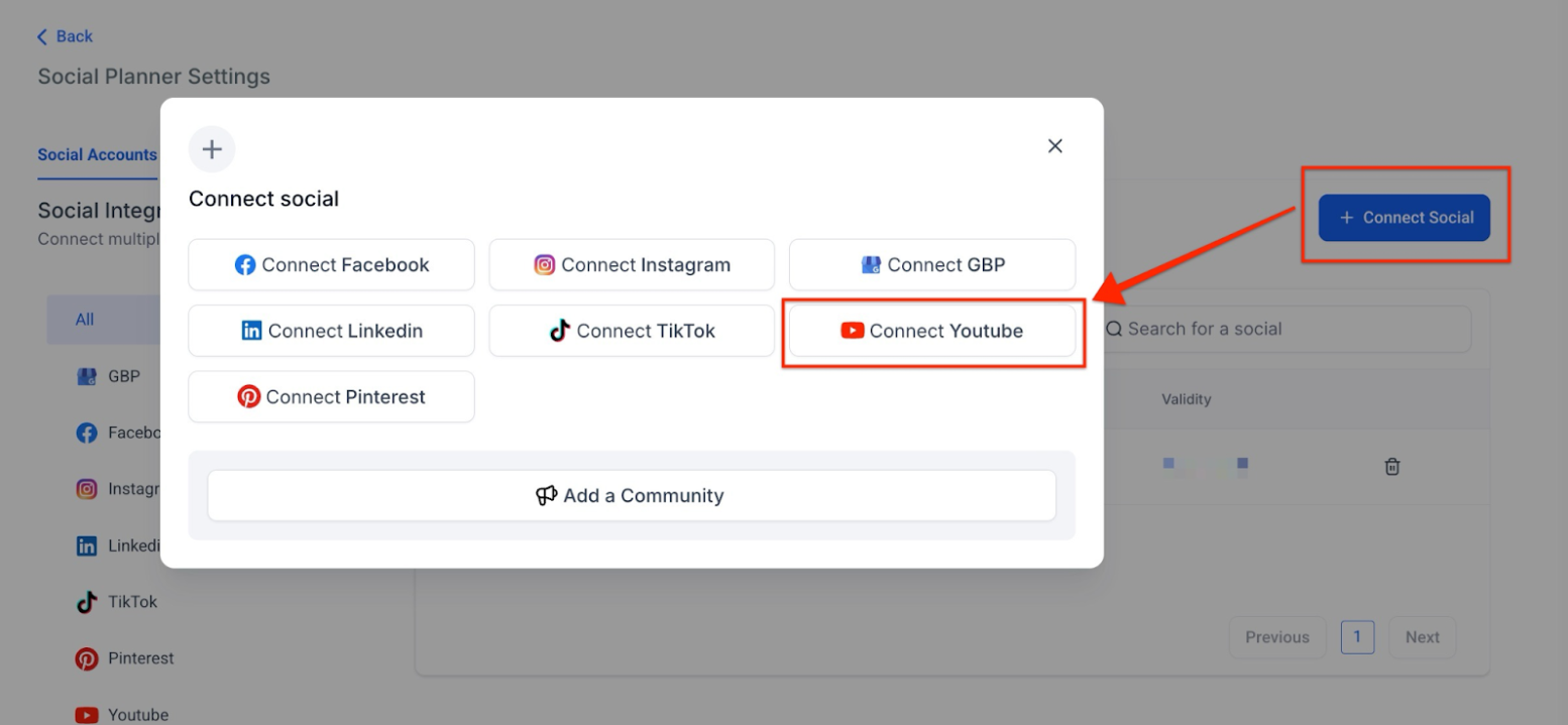 Section titled “Steps to Connect Your YouTube Account”1- Access the Social Planner: