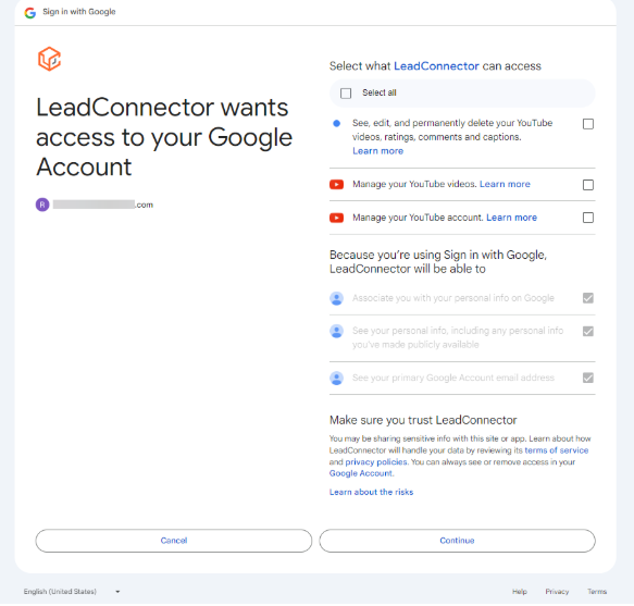 - Once connected, you will see a list of your YouTube accounts (if you have multiple).