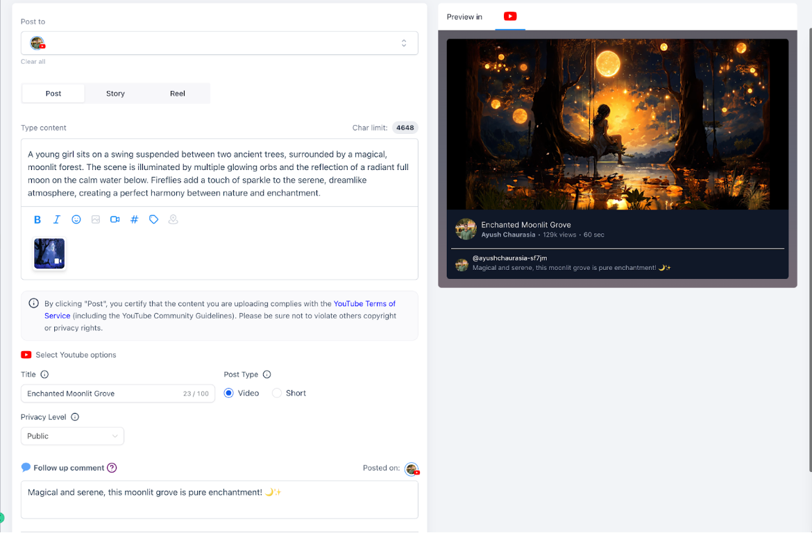 Question: Can I schedule both YouTube videos and shorts? Answer: Yes, you can schedule both YouTube videos and shorts. Simply create a new post, select the “Video” or “Shorts” option, and follow the steps to schedule your content.