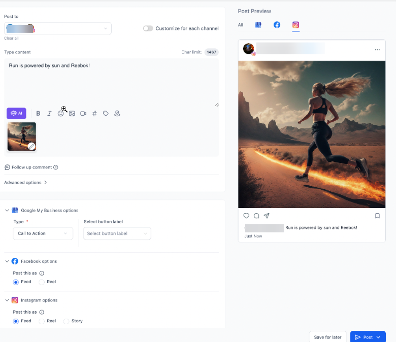 9- Alternatively, Users can also create a single post that includes both images and videos, allowing simultaneous scheduling across the entire platforms, and saving time by avoiding multiple individual posts.