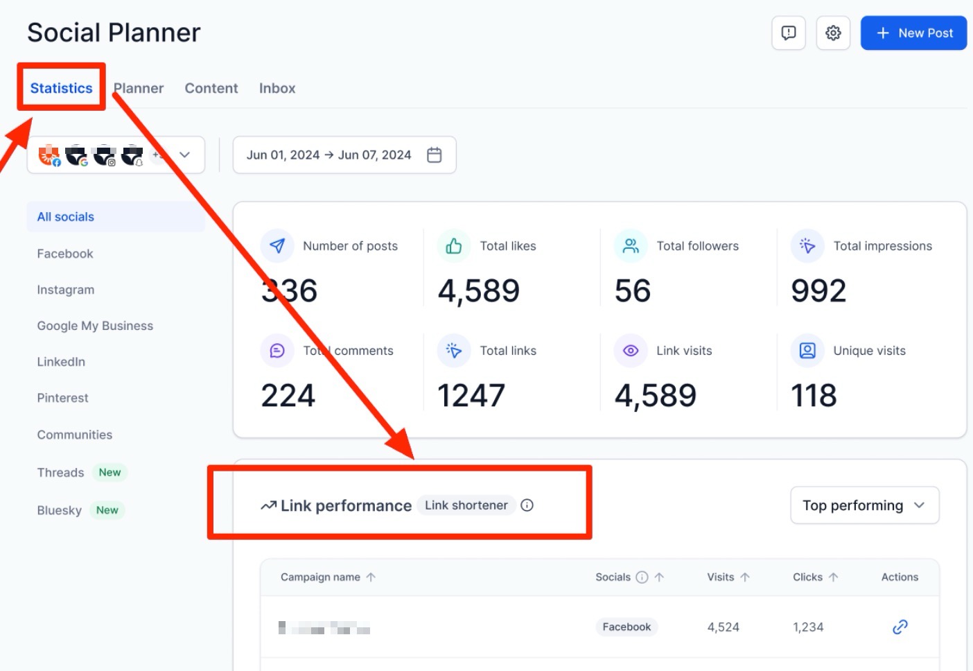 Measure Link Performance Inside Social Planner