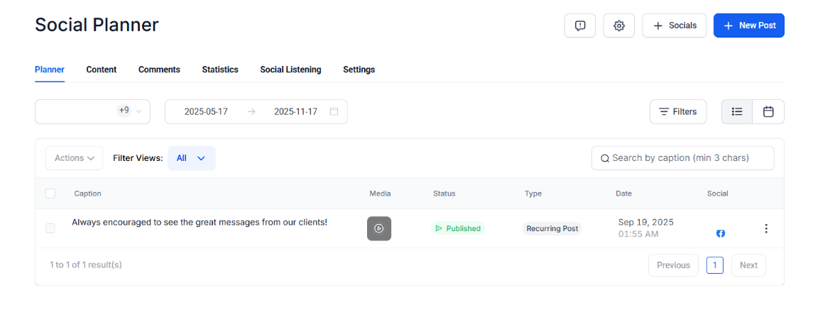 Section titled “Adding Captions to Review Posts”1. Navigate to Social Planner: