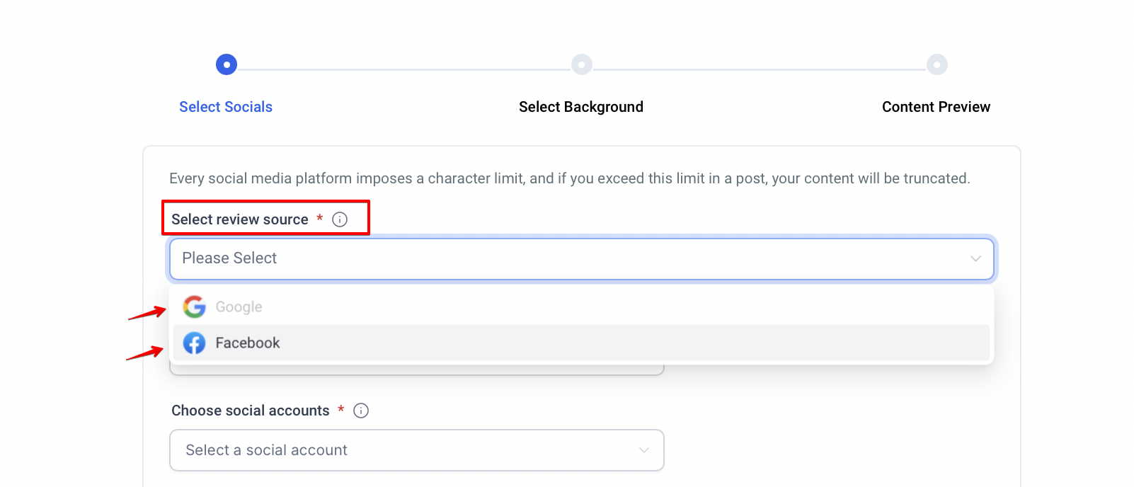 Question: Can I choose which reviews to post? Answer: Yes, you can filter reviews based on star ratings and choose specific social accounts for publishing.