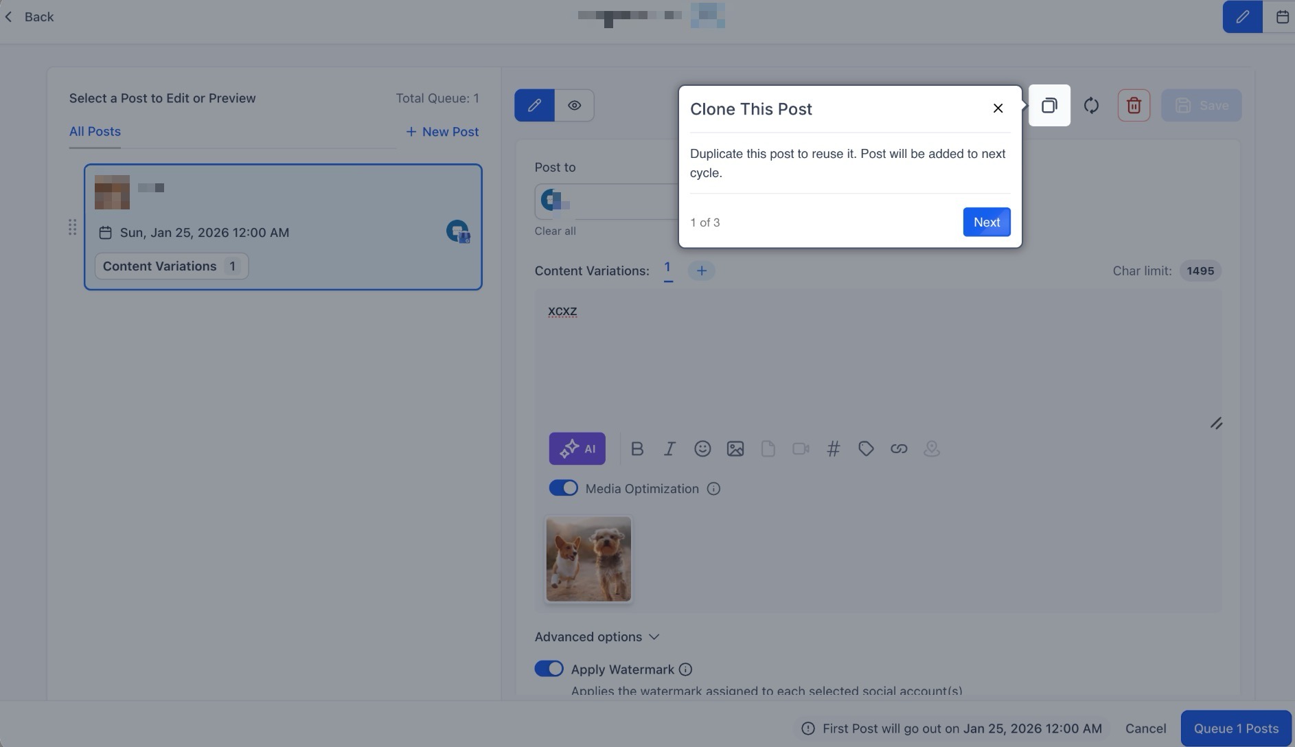- Editable Content: Update and refine previously published posts before re-queuing them for maximum impact.