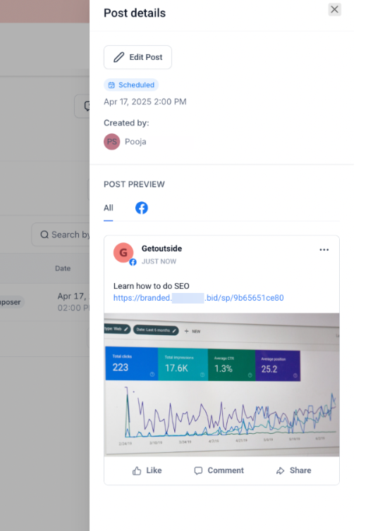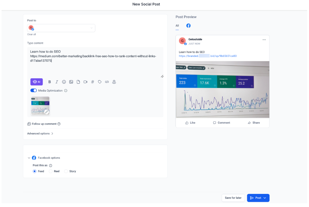 - Once you’re satisfied with the post and the shortened URL, you can either Publish it immediately or Schedule it for a later time.
