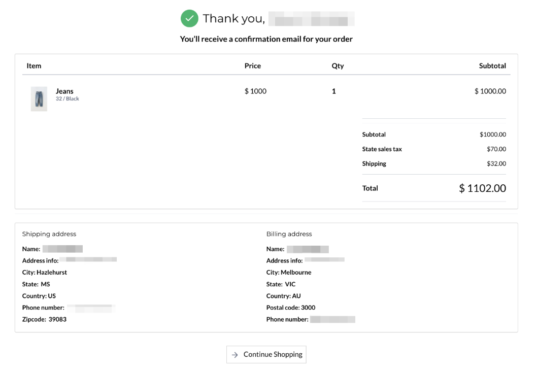 - Order Confirmation Email: The billing address is included in the order confirmation email sent to customers.