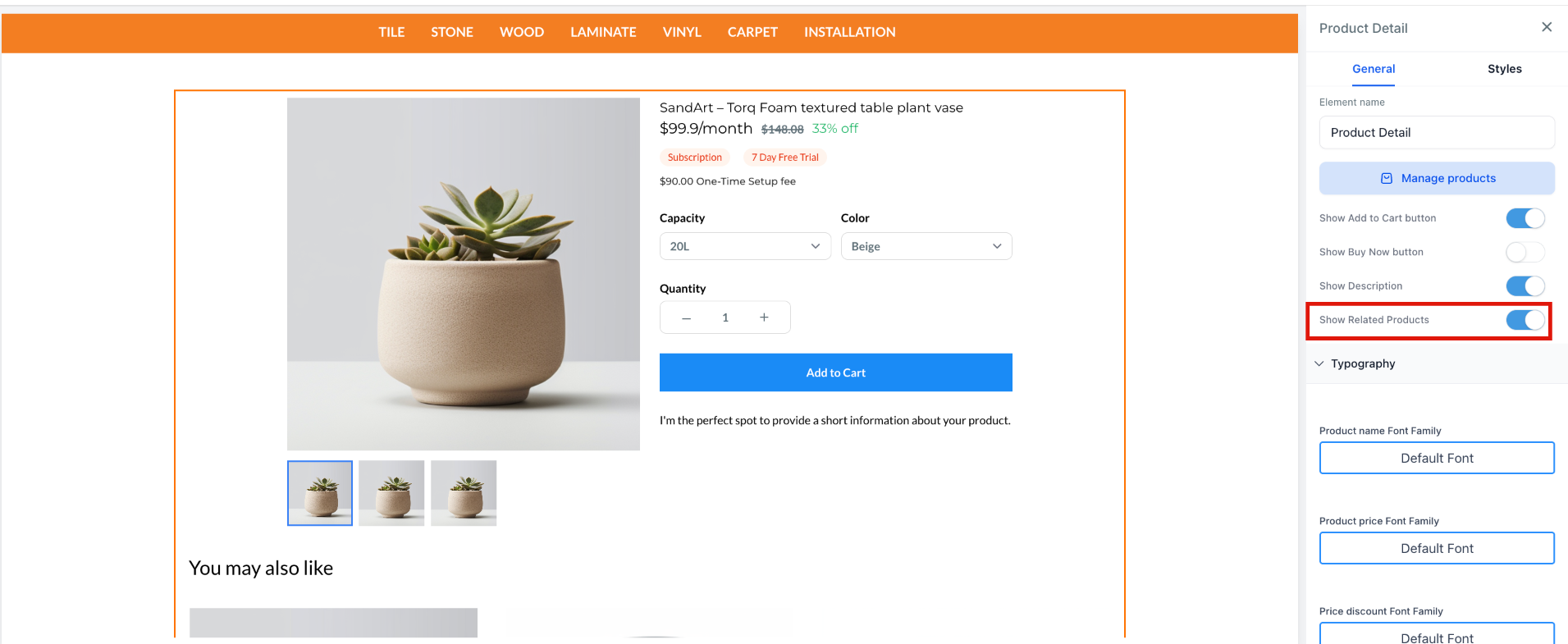 - Edit the heading for the related products section (default is “You may also like”).