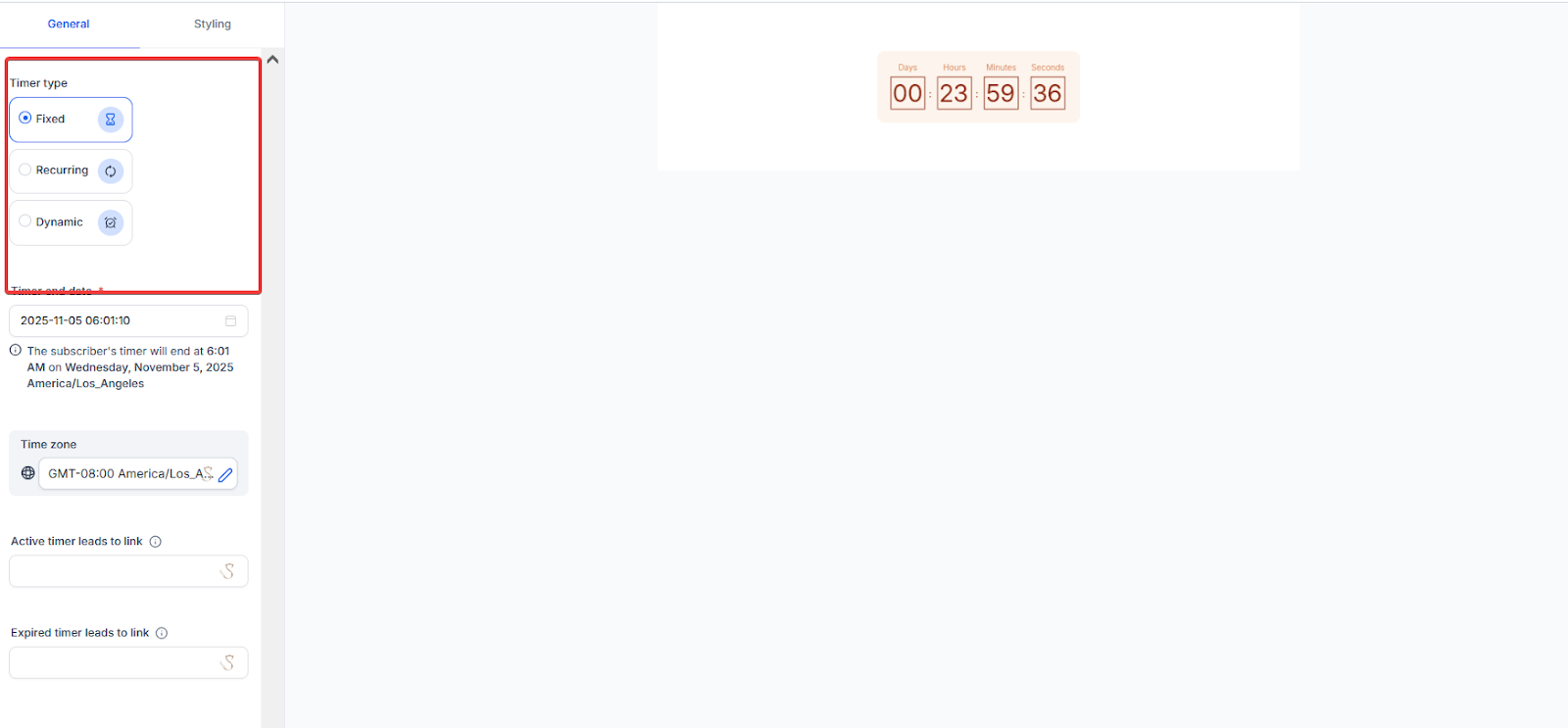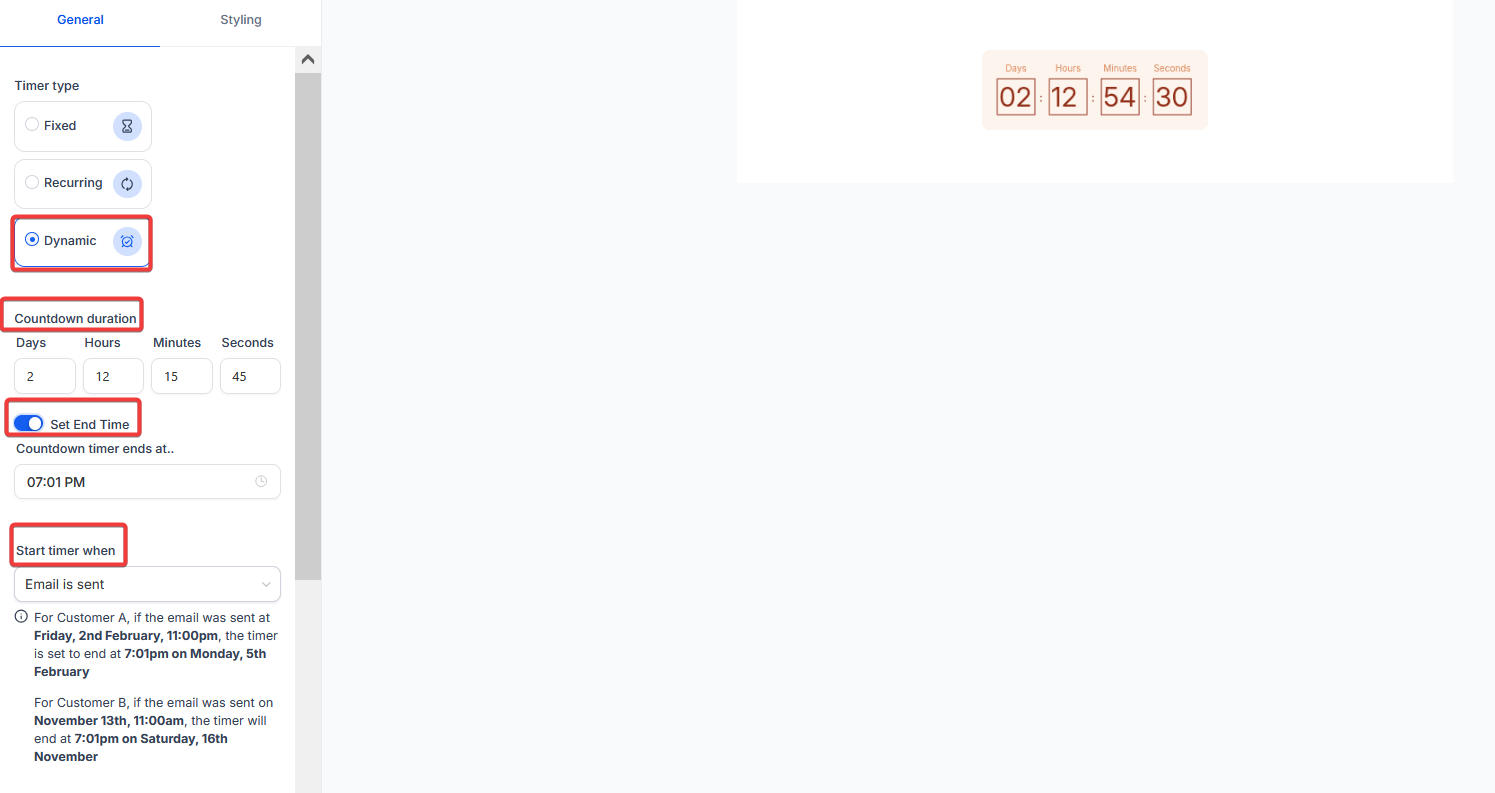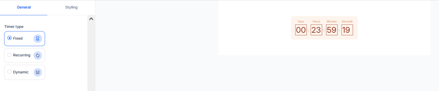 - Flexible Timer Options: Choose between Fixed, Recurring, or Dynamic timers to fit your marketing goals.