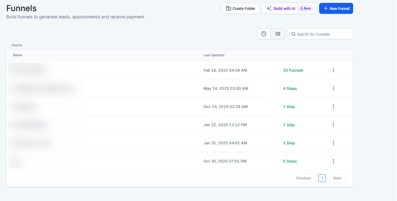 1. Navigate to Funnels in Sites: Open the section where you manage your website or funnels.