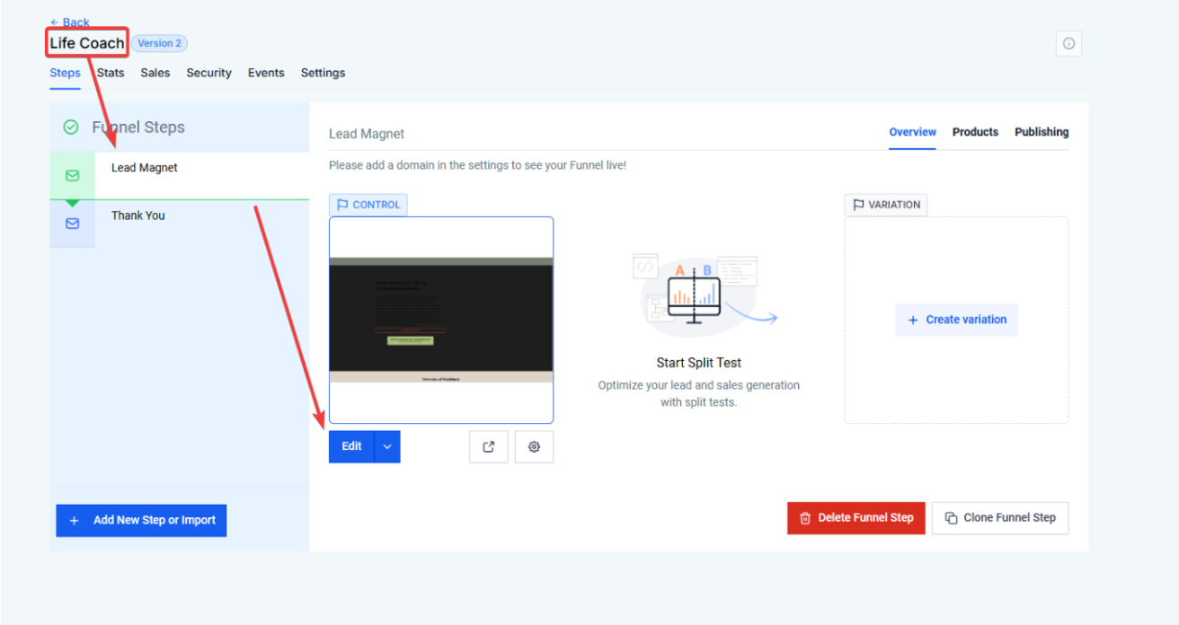 2. Select the Funnel or Website: Choose the funnel or website page where you wish to integrate the countdown timer.