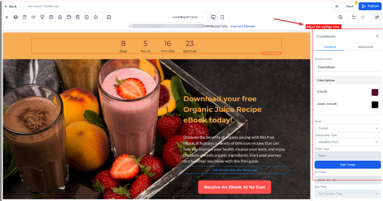 5. Customize the Timer: Adjust the appearance of the timer (e.g., color, size, font) and set the countdown’s end time based on your offer’s deadline.