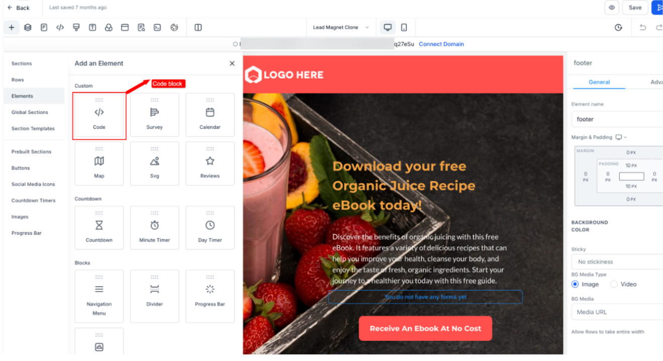 2. Insert a Code Block: In the page builder, drag and drop a code block element onto the desired section of your funnel.