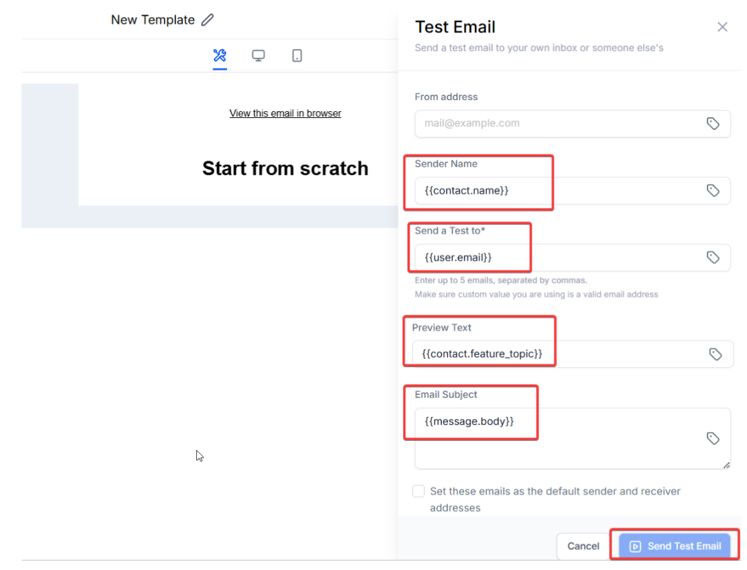 Step 3: Enter in the from address, “to” field, and email subject line, It also provide support for sender names and preview texts in test emails. This enhancement allows users to preview emails more accurately before finalizing them for distribution.