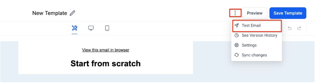 Section titled “Step 2: Select the three dots on the top right and select “Test Email” ”