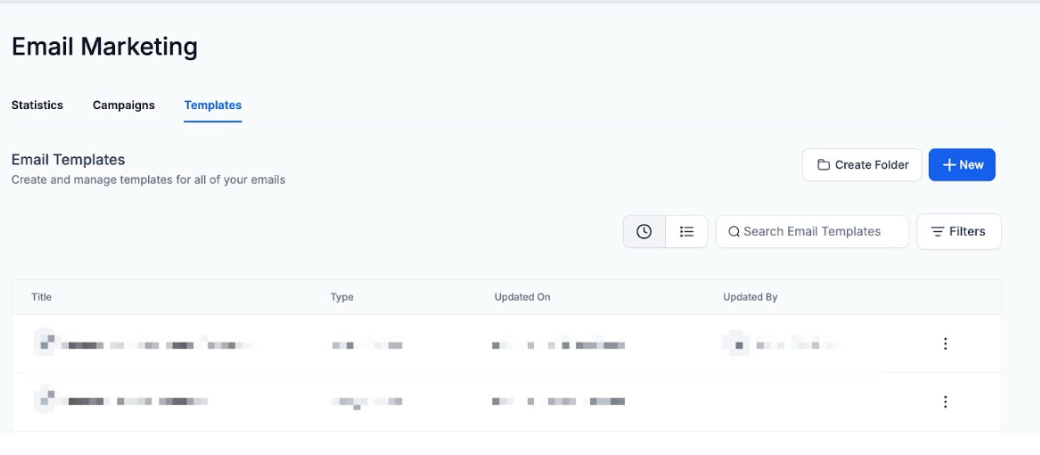 Section titled “Part 2. How can I send a test email in the email builder to preview my template?”Step 1: Go to Marketing on the left > Emails on the top right >From the dropdown menu select Templates and select the email template you wish to test.