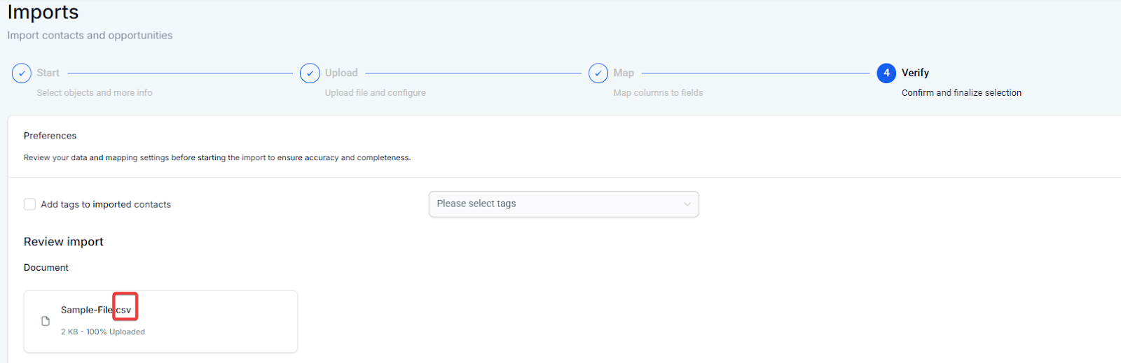 - **Check for Missing Required Fields:**Review the file for missing mandatory fields like Opportunity Name, Email, Phone, or Name (depending on the import type).