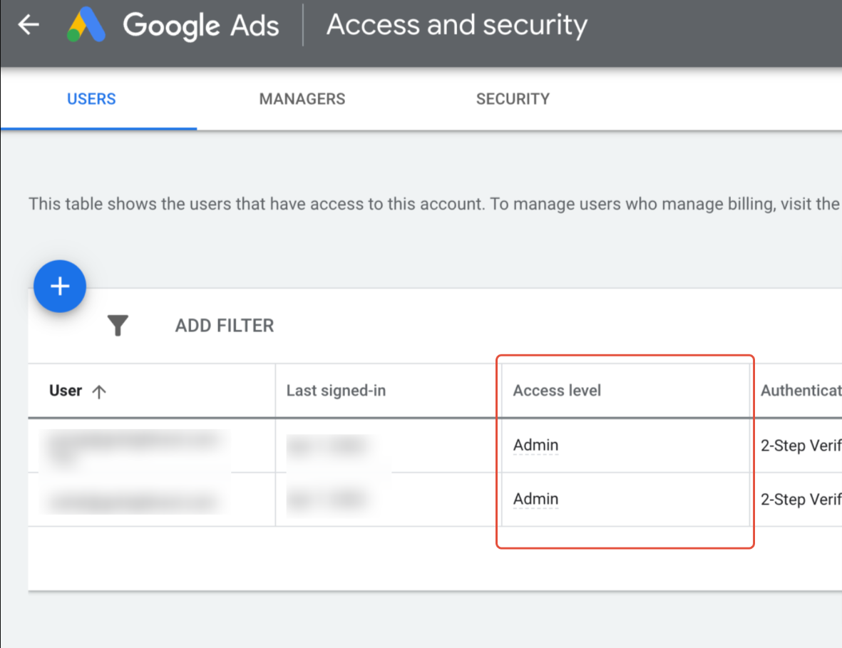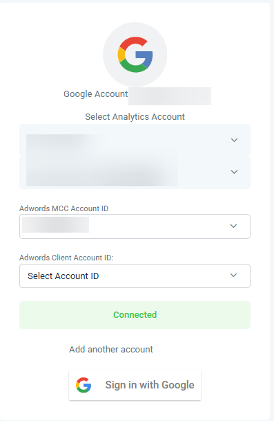 Important: The Gmail account connected to the integration should have either a user role or an admin role in the Google Ads account, not a manager role. This is necessary for proper access and reporting functionality.