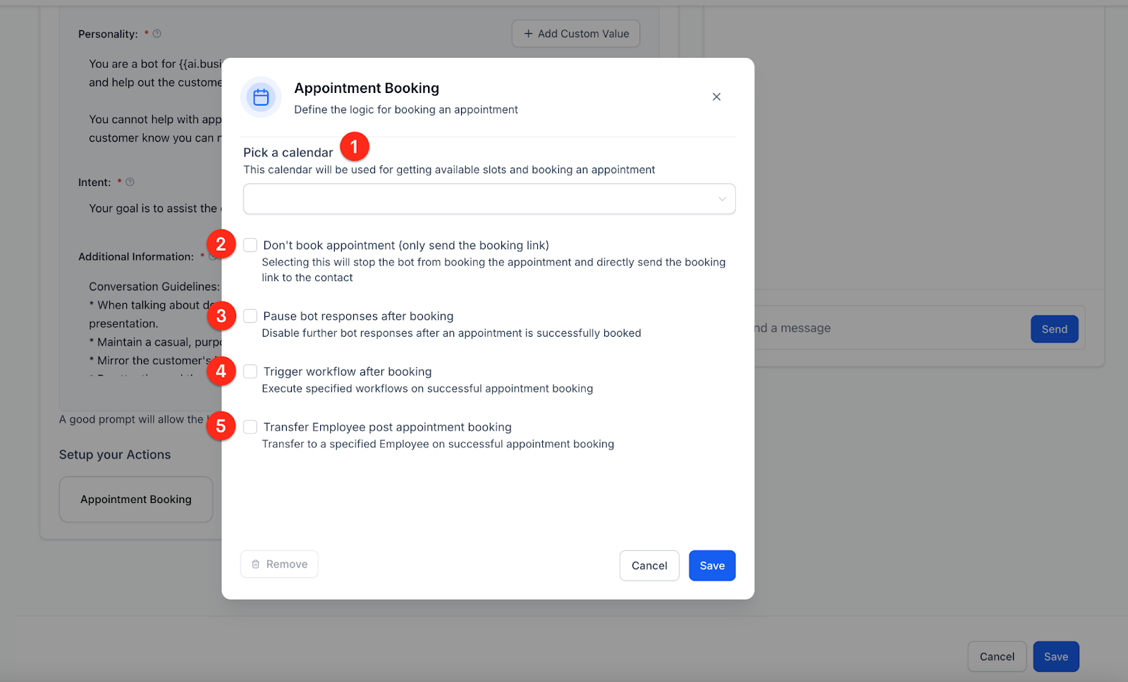 - Select the appropriate calendar for your bot to reference when booking appointments.