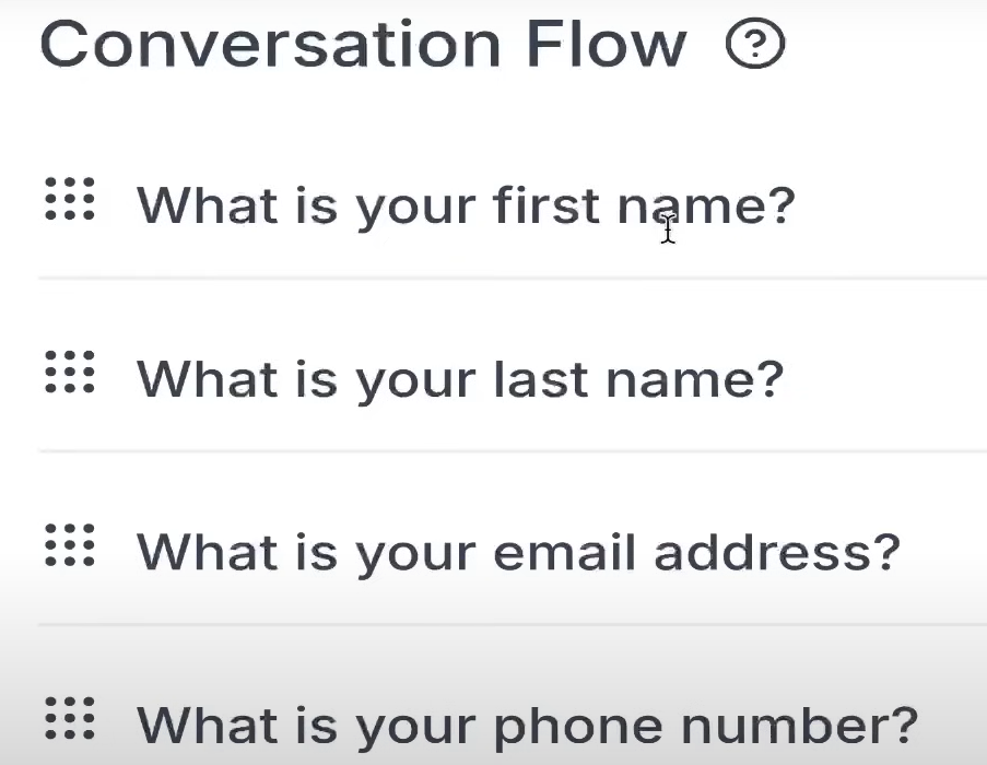 - Add fields like First Name, Last Name, Phone Number, and Email Address to the conversation flow.