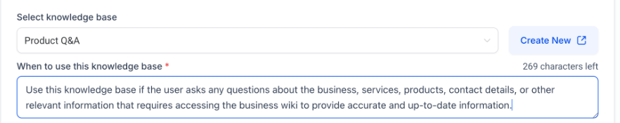 Section titled “Pro Tips”- Train Your Agent: Provide detailed prompts and responses for complex inquiries to improve the accuracy and usefulness of the AI Agent’s interactions.